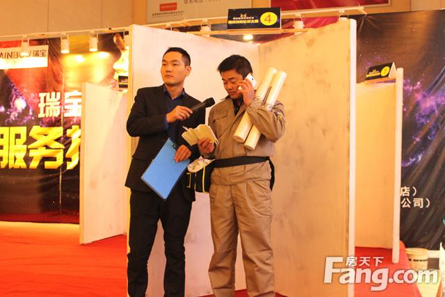 11月18日,由瑞寶壁紙聯(lián)合居然之家主辦的“2015瑞寶壁紙安徽區(qū)域服務(wù)技能比武大賽”在居然之家環(huán)宇店一樓中廳火爆開(kāi)啟。瑞寶壁紙北京總部服務(wù)總監(jiān)云曙光、瑞寶壁紙(安徽)分公司總經(jīng)理彭衛(wèi)、瑞寶壁紙(安徽)分公司服務(wù)經(jīng)理計(jì)永洋、瑞寶壁紙(安徽)分公司渠道經(jīng)理汪德銀、瑞寶壁紙(安徽)分公司工程部總監(jiān)申軍、居然之家環(huán)宇店副總凌智貧等領(lǐng)導(dǎo)嘉賓親臨本次大賽現(xiàn)場(chǎng),為其種子選手點(diǎn)評(píng)并頒發(fā)獎(jiǎng)品,給與支持與鼓勵(lì)。