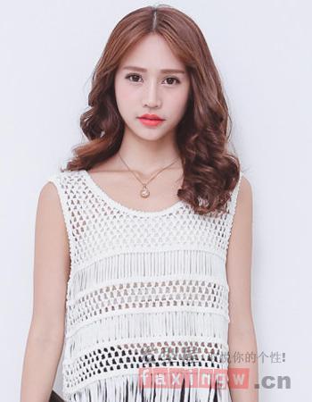 一款很顯小女生的活潑可愛(ài)感的時(shí)尚中分發(fā)型圖片,以淺棕色的染發(fā)顏色為主,搭配中分形式的豐盈中長(zhǎng)卷發(fā)相搭更顯活潑可愛(ài)風(fēng)。