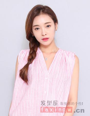 一款很顯溫柔淑女風(fēng)式的時(shí)尚中分發(fā)型圖片設(shè)計(jì),搭配的是清爽的中分露額發(fā)型,搭配側(cè)邊精致的辮子編發(fā)更顯十足的溫柔淑女范兒。