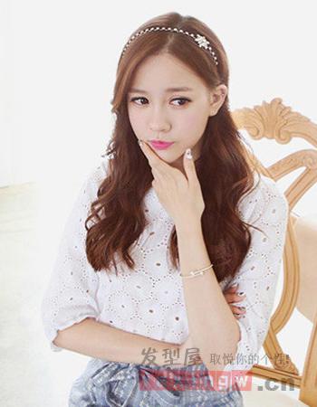 以清新低調(diào)的深棕色染發(fā)顏色為主,再搭配中分的露額發(fā)型將女生精致的鵝蛋臉完美的呈現(xiàn)出來(lái),而精致的發(fā)箍與長(zhǎng)卷發(fā)的搭配最顯青春少女風(fēng)了。