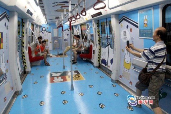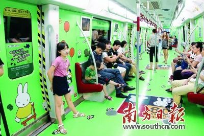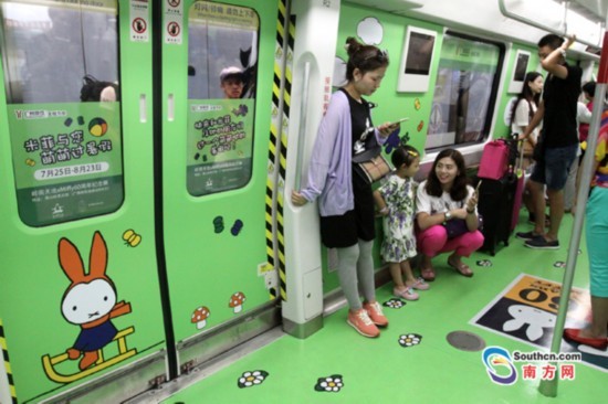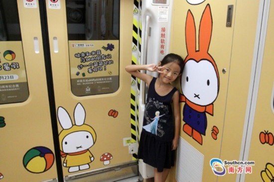 繼“18周年文化專列”后,廣州地鐵六號線昨日再次開出Miffy(米菲)文化專列。