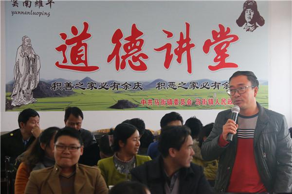 2015年11月27日,馬街鎮(zhèn)以“愛(ài)的奉獻(xiàn)”為主題開(kāi)展“道德講堂”實(shí)踐活動(dòng)。為機(jī)關(guān)干部講述身邊感人事跡,激發(fā)大家情感共鳴,弘揚(yáng)社會(huì)正氣,傳遞社會(huì)正能量。