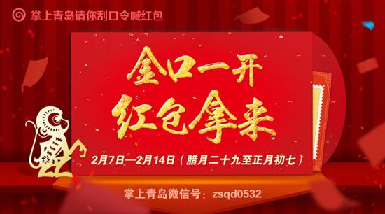 掌上青島微信過年期間刮口令喊紅包,七天樂主播語音每天陪你侃,吃喝玩樂全攻略奉送大福利,電影票、滑冰票、情侶美食套餐、冰雕展門票送不停!2月7日至14日(臘月二十九至正月初七),關(guān)注掌上青島微信內(nèi)容,刮口令喊紅包吧!