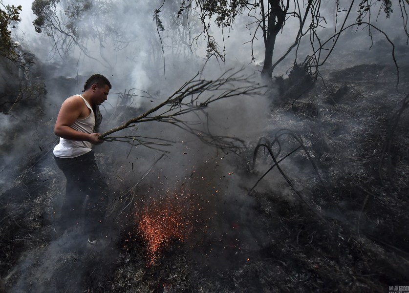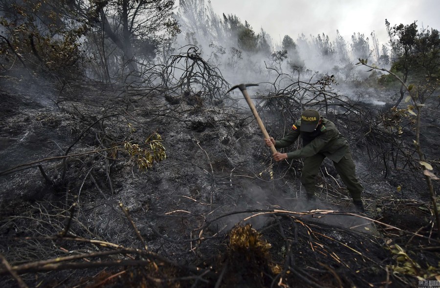 當(dāng)?shù)貢r(shí)間2016年2月2日,哥倫比亞波哥大,當(dāng)?shù)匾蚋珊祵?dǎo)致山火肆虐,濃煙滾滾,多個(gè)政府機(jī)構(gòu)要求人員撤離避難。圖為民眾正在滅火。視覺中國供圖