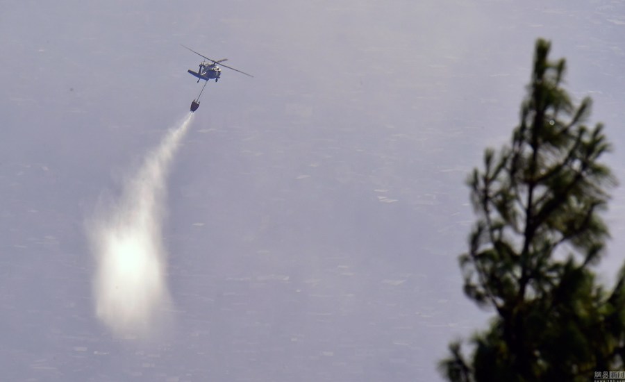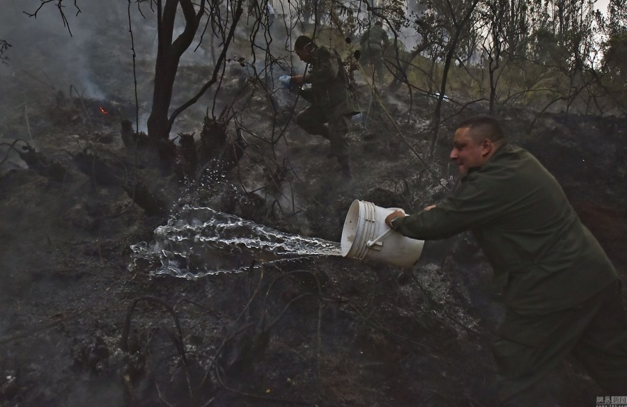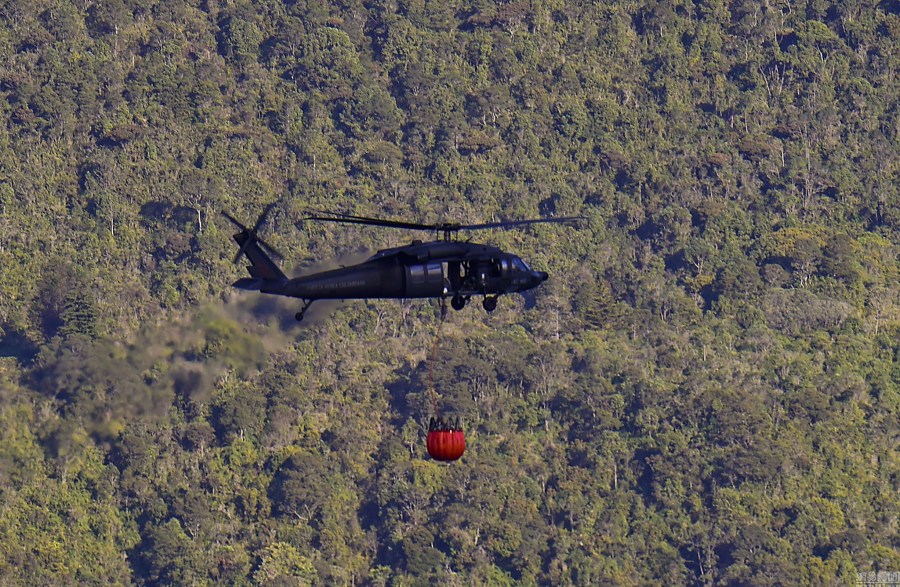 當(dāng)?shù)貢r(shí)間2016年2月2日,哥倫比亞波哥大,當(dāng)?shù)匾蚋珊祵?dǎo)致山火肆虐,濃煙滾滾,多個(gè)政府機(jī)構(gòu)要求人員撤離避難。圖為空中噴水滅火。視覺中國供圖