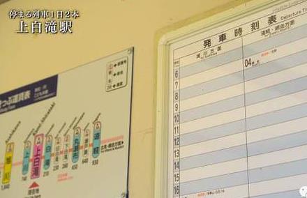 上白滝站為了僅僅一名的女高中生一直保持運(yùn)營著,今年春天這位女高中生即將畢業(yè)了,上白滝也宣布2016年(平成28年)3月26日 – 因使用者減少廢止車站。