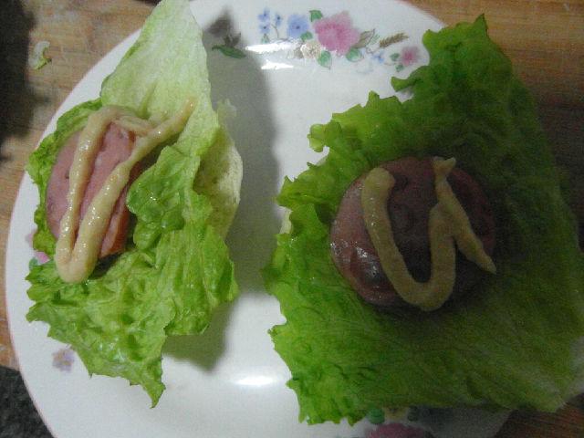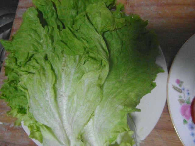 1,生菜葉,準(zhǔn)備3、4片,昨天晚上洗好的,今天拿出來用葉子上面就沒有水了。