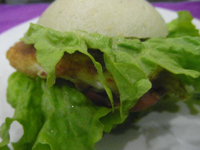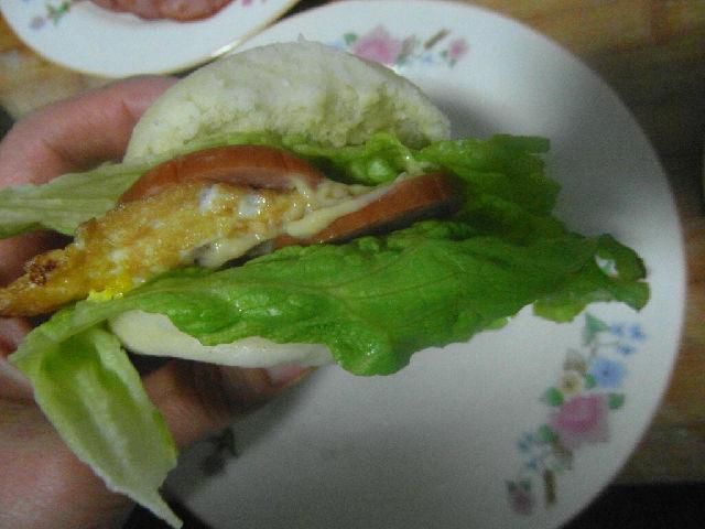 主材:丘比照燒口味沙拉醬、饅頭、煎雞蛋、火腿、生菜。