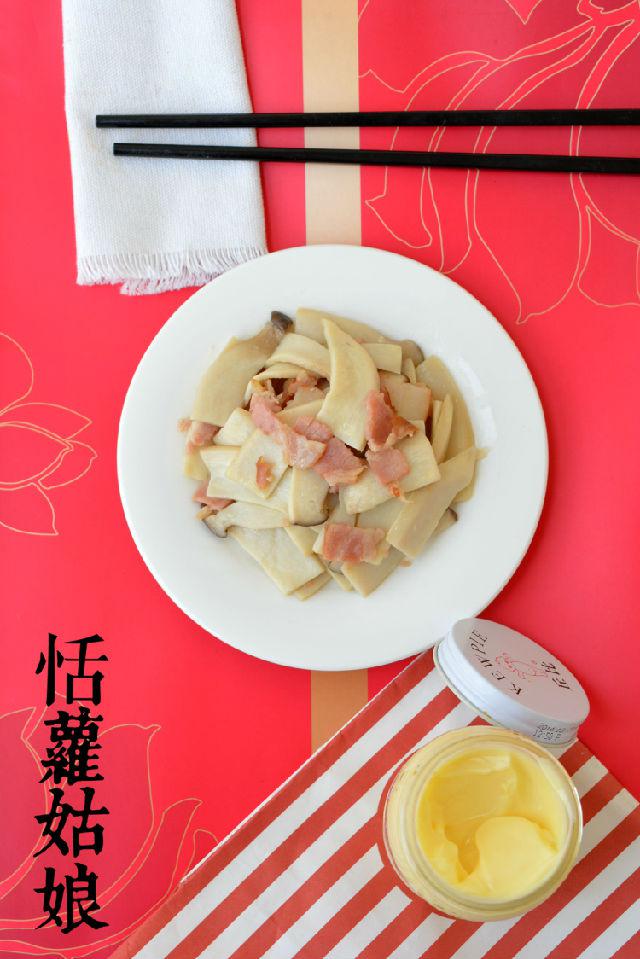 既然主要成分是植物油,而且味道空口吃也那么好吃……那么……用來炒菜或許不錯(cuò)吧~結(jié)果炒了一個(gè)培根杏鮑菇,簡(jiǎn)直是香~飄~萬~里~啊~~~