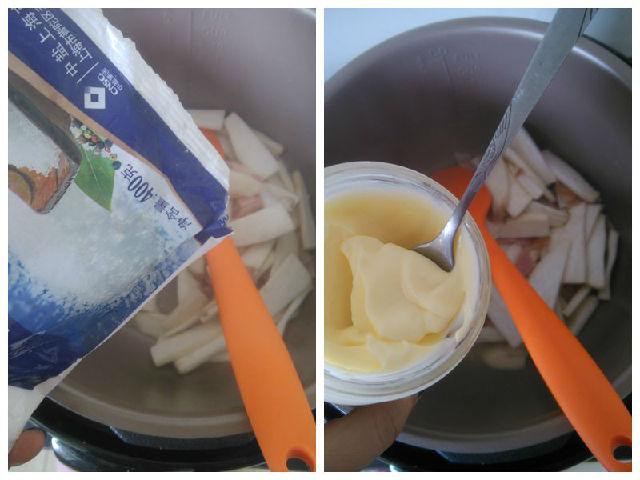 10、快出鍋的時(shí)候再加入一勺沙拉醬攪拌均勻即可~