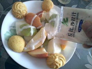 獼猴桃是一種營養(yǎng)價值極高、口感酸甜的水果,深受大眾的喜愛,被譽為是“水果之王”。梨子果肉通亮色白,鮮嫩多汁,口味甘甜,核味微酸,是很好的水果。蘋果果肉清脆香甜,能幫助消化。丘比沙拉醬有大量的蛋黃,醬體細膩、粘稠、乳化狀態(tài)非常好,沒有添加增綢劑,蛋黃中特有的香氣與醋、鹽、植物油在比例上調配合理,所以他們的搭配應該是絕美的!-------竊以為!