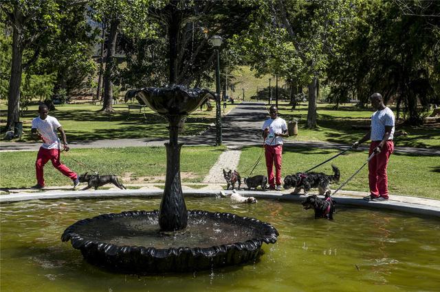旅店會(huì)為每只狗狗量身定制活動(dòng)。圖為工作人員帶著狗在開(kāi)普敦德瓦爾公園(De Waal Park)中玩耍。(網(wǎng)站截圖)