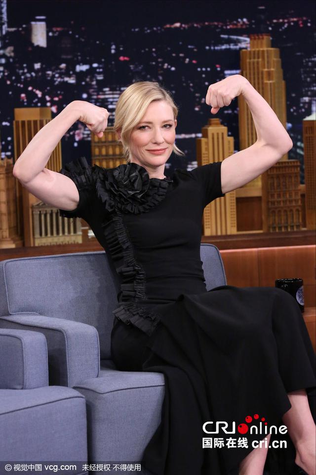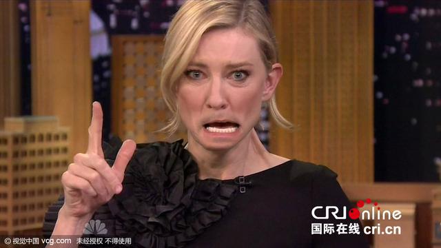 紐約,當(dāng)?shù)貢r(shí)間11月16日,凱特·布蘭切特(Cate Blanchett)參加電視節(jié)目錄制。在節(jié)目中,她與主持人玩“唇翻轉(zhuǎn)”游戲大力扮丑,絲毫沒有女神包袱。更是大方擺出了大力水手的招牌動(dòng)作,秀出自己的手臂肌肉。