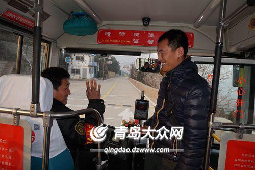 凌晨的嶗山格外寒冷,即使戴著手套,王永棟還是會(huì)不時(shí)的搓手哈氣取暖,但是每當(dāng)有乘客上車,王永棟都會(huì)把溫暖的新年祝福送給乘客。大眾網(wǎng)記者注意到,雖然一路上乘客并不多,但王永棟的工作熱情依舊高漲,上來的乘客基本都是熟客,一上車互相打個(gè)招呼,提醒他們坐好,王永棟就開始專心開車。