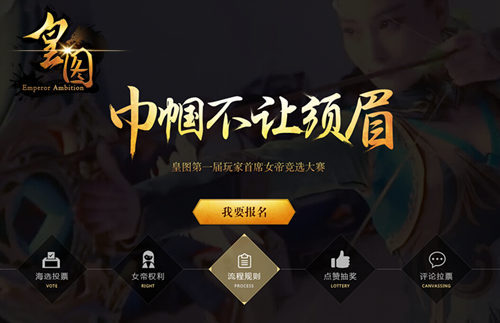 為了讓大伙兒近距離接觸女神,9377《皇圖》官方特舉辦玩家女帝競選大賽,票選大家心中的亮麗女神,是誰,遠遠的偷走我的心?你在家族中伴我前行的領家小妞,還是那敵對家族中的囂張妹兒?