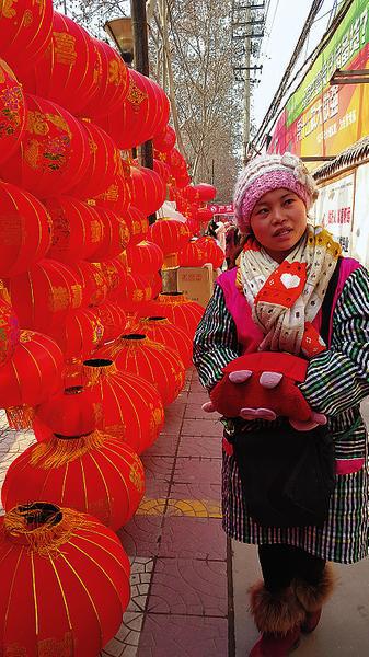 在西安市長纓西路的“貝斯特批發(fā)市場”街邊,一盞盞大紅燈籠高高掛起,似裝飾的墻面一般,把這里裝點成了一公里多長的紅色海洋。一位商戶告訴記者,這里是西北最大的燈籠批發(fā)市場,每年從春節(jié)前一直到元宵節(jié)都很紅火。走上前去,有各色燈籠、長串的辣椒結、猴子吉祥物、中國結、春聯(lián)、紅包、年畫、掛歷、紅蠟燭和花樣繁多的掛件等等不一而足,掛滿了街面。大大小小的燈籠上印滿了五彩繽紛的文字和圖案,掛件更是種類繁多,形色各異,每一件都飽含著吉祥,綻放著喜慶……
