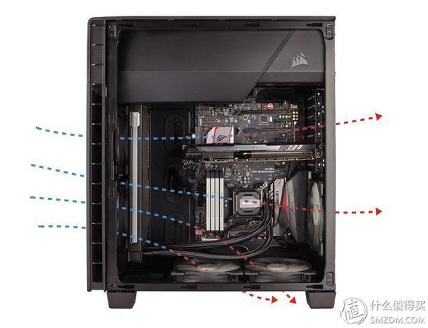 雖然強(qiáng)調(diào)降噪,但海盜船Carbide 600C / 600Q內(nèi)部擴(kuò)展和通風(fēng)考慮也很周到,可前置安裝兩把120 /140毫米×2(140毫米×2預(yù)裝)風(fēng)扇,底部120毫米×3 /140毫米×2,尾部一把140毫米,當(dāng)然也可以安裝水冷散熱器。全部的進(jìn)風(fēng)口都有防塵濾網(wǎng),以防止灰塵侵入。內(nèi)部驅(qū)動器托架布局包括2組5.25英寸外置,2組3.5英寸內(nèi)置和3組2.5英寸專用。尾部的擴(kuò)展槽有8個,可支持多路長370-395毫米(600C是395毫米,600Q是37厘米,都可以容納下旗艦三風(fēng)扇顯卡)。