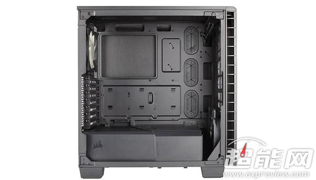 海盜船400Q/400C采用ATX結(jié)構(gòu),主流的電源下置結(jié)構(gòu),遮蔽式電源位,標(biāo)準(zhǔn)七卡槽,電源前部是HDD硬盤位,主板背面可安裝3個(gè)SSD。