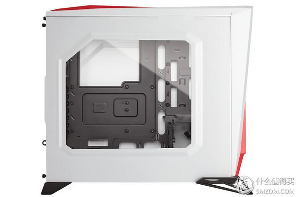 海盜船Carbide SPEC-ALPHA機(jī)箱使用了非對(duì)稱式前臉,線條和高腳墊處理很有力量感。超大側(cè)透開窗,內(nèi)部注重?cái)U(kuò)展散熱,內(nèi)有風(fēng)扇控制器可對(duì)三個(gè)LED 120mm風(fēng)扇進(jìn)行微調(diào),盡可能的加強(qiáng)內(nèi)部通風(fēng),緩解熱量堆積問題。雖小但內(nèi)擴(kuò)展能力俱佳,可支持完整ATX系統(tǒng)、M-ATX和Mini-ITX,多路GPU以及240mm水冷。硬盤倉(cāng)位經(jīng)過特殊處理,可支持4塊SSD,另外還專為長(zhǎng)顯卡騰出了空間,讓玩家可以放肆上水冷。