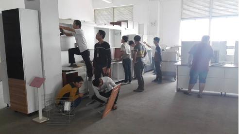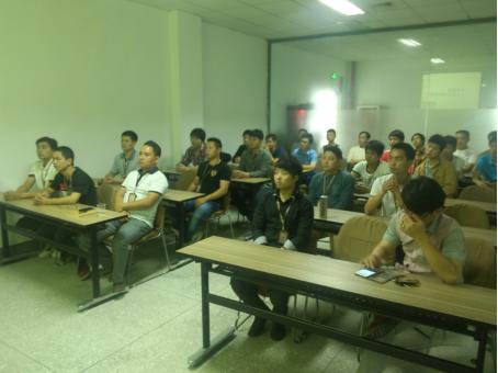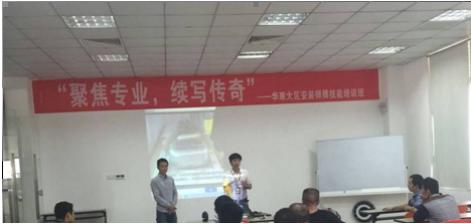 本次培訓內容包括2015金牌工藝升級、2015最新尊尚拉籃、支撐件安裝、臺面安裝新工具、整體廚柜安裝標準、未來廚柜安裝發展趨勢、電器安裝注意事項等課題,由安裝培訓師周會華、工廠技術工程師劉清貴、研發高級技師鄭幼智以及安裝培訓師余兆袓擔崗主講,安裝服務中心的技師們對師傅們進行全程跟蹤與指導。