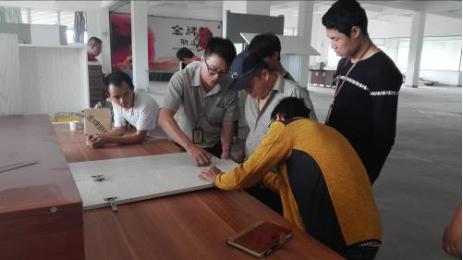 培訓依舊采用金牌一貫的理論結合實踐、實操演練的方式,讓師傅們將學習與應用進行有效結合,為加強安裝師傅們的實操效果,了解產品的結構構造,讓師傅們更深入了解安裝應掌握的事項,培訓師與師傅們做系統說明分解,再讓師傅們對實操逐個過手。
