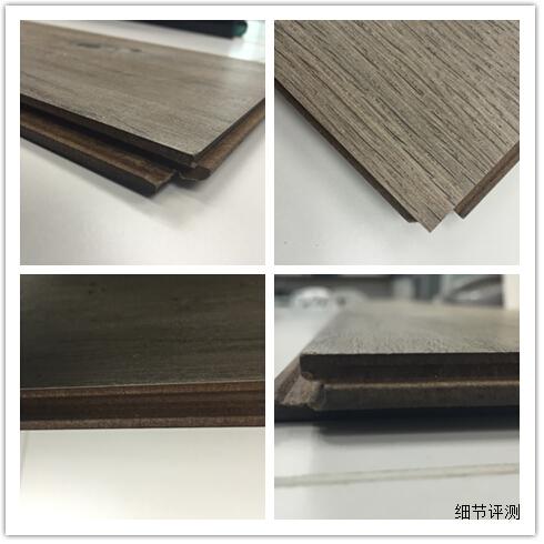 拿到地板之后,小編首先對(duì)邊角、接縫處等進(jìn)行了仔細(xì)檢查,地板表面十分光潔,兩側(cè)接縫表面整齊平整,做工非常細(xì)致,小編用手輕輕觸摸接縫邊緣,無任何多余木刺,觸感平滑,可見此款地板在細(xì)節(jié)處理上的用心。
