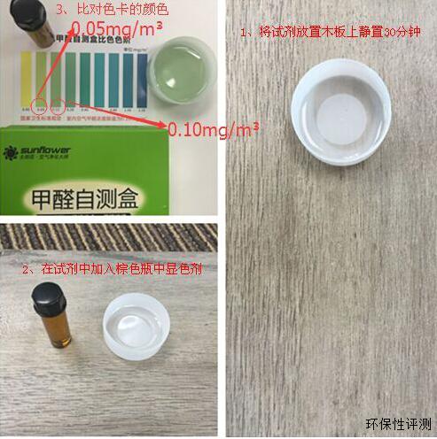 小編把地板放置空氣潔凈的密閉環(huán)境下,將試劑倒于塑料盒中,放在地板上,讓試劑充分吸收地板散發(fā)出的氣味。30分鐘后,將棕色瓶中的顯色劑與色卡比,發(fā)現(xiàn)空氣甲醛溶度值略低于0.05mg/m3。根據(jù)國家衛(wèi)生標(biāo)準(zhǔn)規(guī)定,室內(nèi)空氣甲醛溶度標(biāo)準(zhǔn)限值為0.10mg/m3,證明揚(yáng)子地板YZ7006冰島之戀甲醛含量極低,鋪在室內(nèi)完全不用擔(dān)心空氣的的甲醛危害哦。