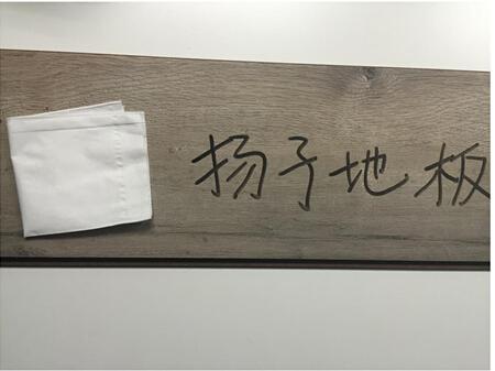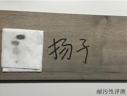 隨后,小編對(duì)揚(yáng)子地板YZ7006冰島之戀的耐污性也進(jìn)行了測試,用油性黑色筆在地板表面上寫下“揚(yáng)子地板”四個(gè)字后,用紙巾輕輕擦拭,地板表面沒有留下任何痕跡,嶄新如故,耐污性測試完美收官。