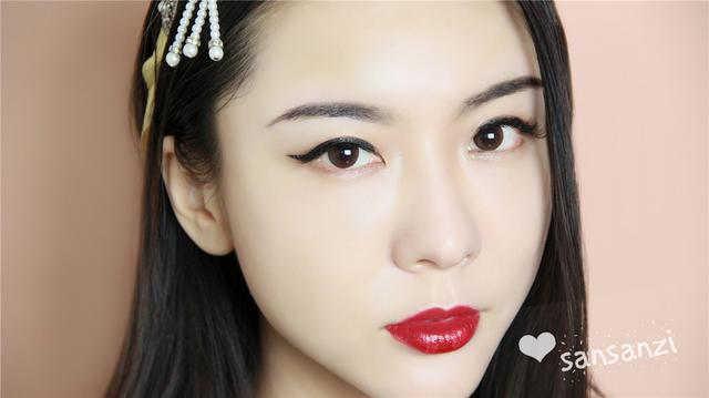 涂上紅唇,是不是一下子妝面就幻彩了起來!這款?yuàn)y容的唇部線條畫得比較明顯,顯得氣場(chǎng)十足,也不會(huì)很小女孩。
