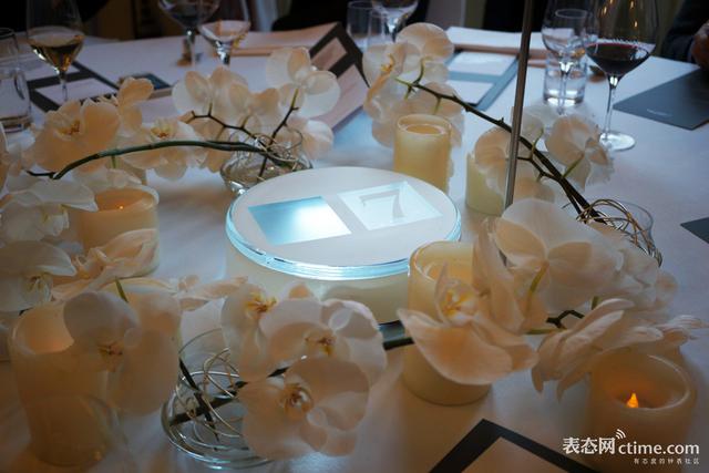 晚宴開始前的雞尾酒會上,朗格雕刻車間的負(fù)責(zé)人在現(xiàn)場作夾板雕刻展示,瓦爾特?朗格也跑來看她工作。白天森帕歌劇院發(fā)布會上,她也是上臺的三位新品主創(chuàng)人員之一。她的工作臺右側(cè)放著一個大匣子,無論是打扮得如同搖滾明星的俄羅斯客人,還是一襲素色和服(好看得讓我轉(zhuǎn)移不了視線)的日本客人都圍在她臺前,時不時爆發(fā)出一陣歡呼聲——朗格雕刻車間一共六位雕刻師傅,各有風(fēng)格,客人們?nèi)∠伦约旱氖直斫o負(fù)責(zé)人看,她能辨別機芯夾板是誰雕刻并從大匣子里挑出相關(guān)證明送給客人。