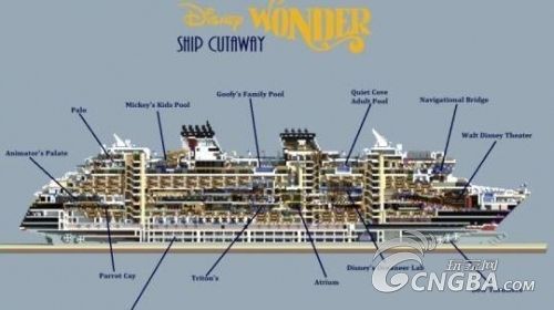 CharlesGoldburn打造的這款迪斯尼郵輪名為迪士尼奇跡號(DisneyWonder),是迪士尼海上巡游線的第二艘郵輪,作者將這艘郵輪徹底搬到了游戲《我的世界》中去,什么叫徹底呢?就是1:1,工作量十分驚人。