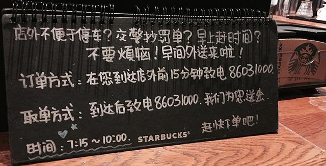 事實(shí)上星巴克門店還是有許多自主權(quán)的,部分店內(nèi)就有相應(yīng)的外送服務(wù),可能是針對附近區(qū)域,也可能是你先電話點(diǎn)單然后到店領(lǐng)取。所以如果你大可以詢問一下店員是否提供類似的外送服務(wù),指不定會有驚喜。