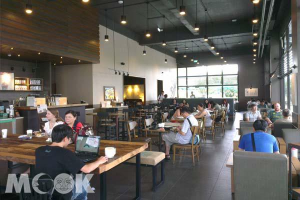 星巴克店面在木質建材包覆下,顯得沉靜、悠閒。(攝影/陳冠鑫)