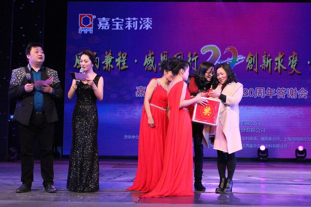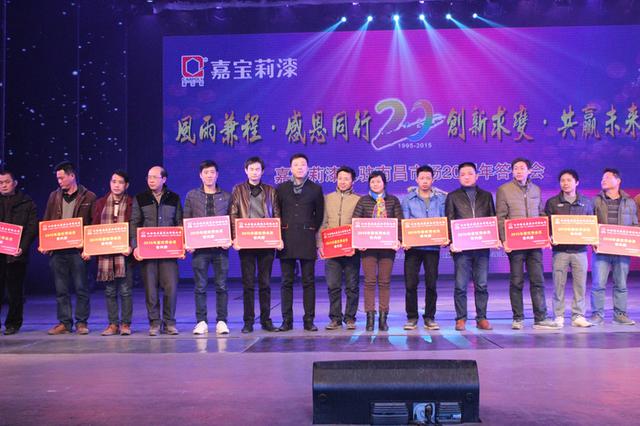 風雨兼程?感恩同行,創(chuàng)新求變?共贏未來,嘉寶莉漆從1995年到2015年入駐南昌市場正好20年。2016年1月28日下午,由江西陶樂嘉實業(yè)有限公司主辦嘉寶莉漆化工集團股份有限公司協(xié)辦的嘉寶莉漆入駐南昌市場20周年感恩答謝會于南昌琴島之夜大劇場隆重召開。南昌嘉寶莉員工、經(jīng)銷商、材料商以及媒體朋友等800多人出席了本次大會。