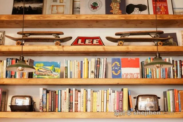 在木質(zhì)擱架下,存儲(chǔ)了房主從各地帶來(lái)的收藏品和書(shū)籍。