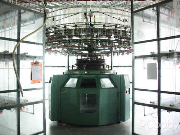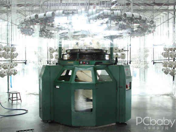 隨后,我們還看到了自動(dòng)條紋機(jī)和羅紋雙面機(jī)。自動(dòng)條紋機(jī)由電腦控制條紋長度、顏色及換紗,大大減輕了人工的操作力度。機(jī)器中間的玻璃區(qū)間,專門把各種顏色的紗線單獨(dú)封閉起來,有效的防止飛花的進(jìn)入,使得整個(gè)織造過程更加嚴(yán)謹(jǐn)和精密。而羅紋雙面機(jī)擁有上下兩層的織針,可織出雙面布料,安奈兒童裝中的羅紋領(lǐng)口與袖口都是由這臺(tái)機(jī)器織成的,它使得安奈兒的服裝經(jīng)久耐穿不變形。