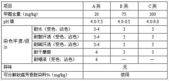 根據(jù)《規(guī)范》,童裝安全技術(shù)類別分為A、B、C三類。其中,A類最佳,B類次之,C類是基本要求。嬰幼兒紡織產(chǎn)品應(yīng)符合A類要求;直接接觸皮膚的兒童紡織產(chǎn)品,至少符合B類標(biāo)準(zhǔn);非直接接觸皮膚的兒童紡織產(chǎn)品,要求至少應(yīng)符合C類標(biāo)準(zhǔn)。詳見下表: