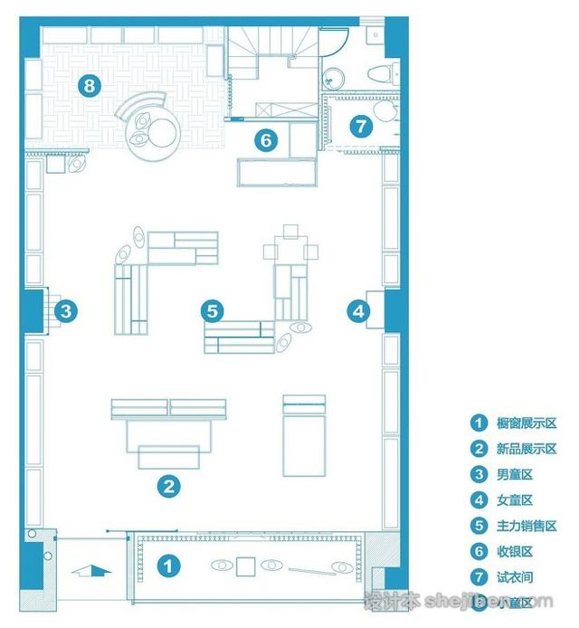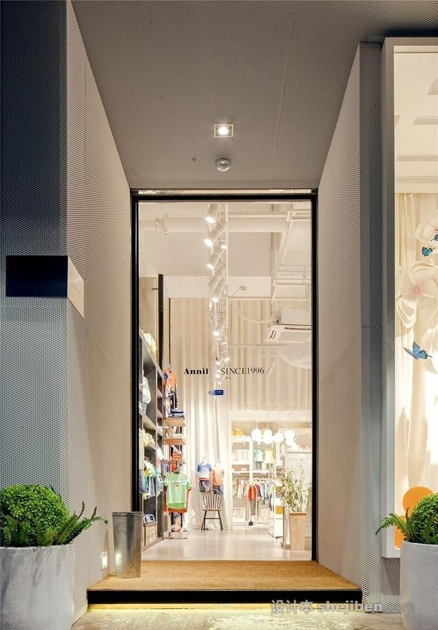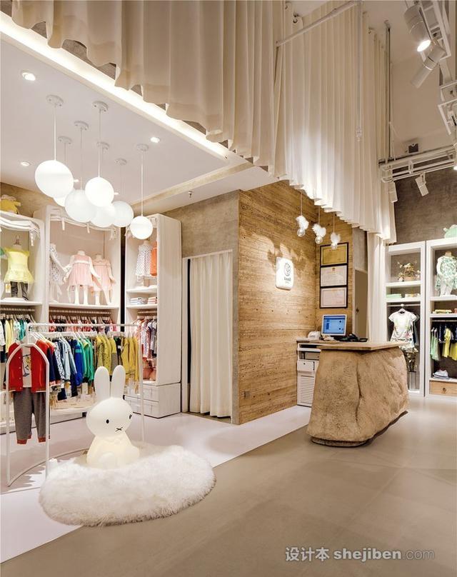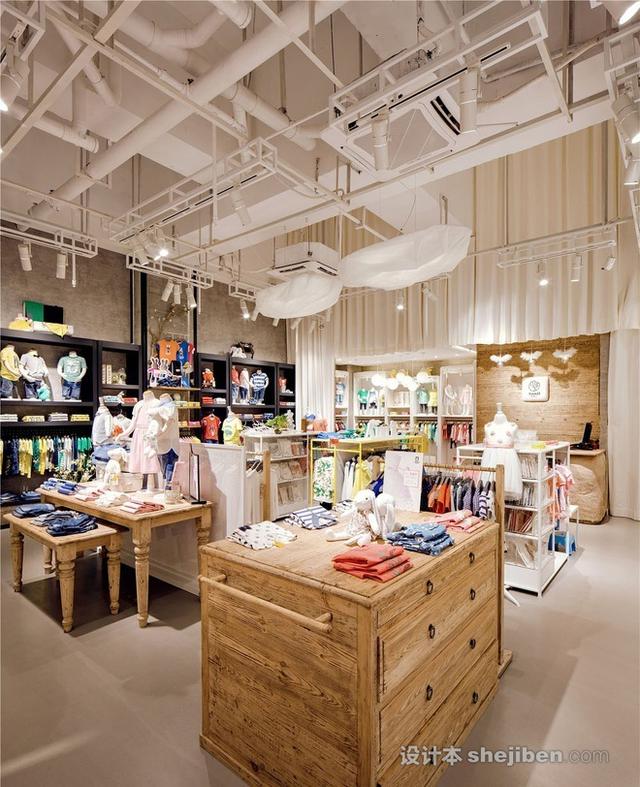 設(shè)計(jì)師運(yùn)用原始木材和清水混凝土等原生態(tài)材質(zhì),為銷(xiāo)售區(qū)域及整體空間營(yíng)造自然最初的氛圍感,使空間的原生態(tài)概念與ANNIL的訴求——“天然的、有機(jī)的”一脈相承,體現(xiàn)出安奈兒品牌“不一樣的舒適”的主題。設(shè)計(jì)師在墻面、地面大面積運(yùn)用水泥原生態(tài)材質(zhì),給受眾營(yíng)造原生、質(zhì)樸、粗糙的直觀感受。而兒童服飾的用料必是盡柔軟、溫暖、舒適之可能,以空間材質(zhì)的質(zhì)樸、粗糙對(duì)比產(chǎn)品的溫馨、柔軟,襯托出產(chǎn)品的細(xì)膩質(zhì)感,更加生動(dòng)地表達(dá)了兒童需要呵護(hù)的理念。在幼兒服裝區(qū),視覺(jué)化地將柜體比作裹嬰布進(jìn)行包裹,用純白亞麻布包裹概念體現(xiàn)幼童的純潔、材料的自然,引申出安奈兒品牌對(duì)嬰童的呵護(hù)之意。中島臺(tái)的舊粗木元素以及男女童裝區(qū)展柜的舊木飾面,更為空間中單純的原生態(tài)氛圍加入了一絲人文情懷。舊木經(jīng)過(guò)時(shí)間的沉淀與如同新生兒般質(zhì)感的衣物形成對(duì)比,讓空間氣質(zhì)更加飽滿(mǎn)。最終呈現(xiàn)到受眾面前的空間,不僅僅是形式上的,而是將天然原生態(tài)這一概念融入設(shè)計(jì)的每一個(gè)環(huán)節(jié)、每一個(gè)細(xì)部甚至銷(xiāo)售的流程中,從而使空間的自然感受與安奈兒的品牌理念緊密契合。