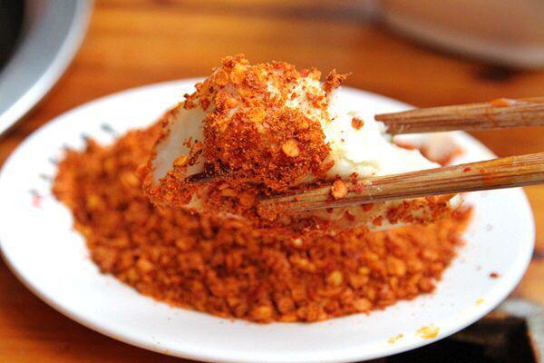 料碗有特色、芝麻醬、蒜泥味,都屬于少鹽清淡,點個料碗送一碟特色的干碟。妞最喜愛芝麻醬的味道,不過蘸上些干料辣椒面,味道更加的豐富,紅紅的辣椒面又香又辣。看到他家的菜品新鮮、干凈,就放心的大把串串吃起來了。