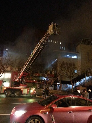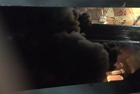 起火現(xiàn)場火勢較猛,濃煙滾滾