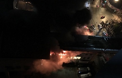 記者23時左右趕到現(xiàn)場時,火勢仍在燃燒,現(xiàn)場煙霧較大。據(jù)現(xiàn)場目擊者介紹,起火時,地鐵仍在運營時間,寶山路站內(nèi)滾滾濃煙。受火勢影響,地鐵3、4號線寶山路站運營暫停,列車跳站通過。