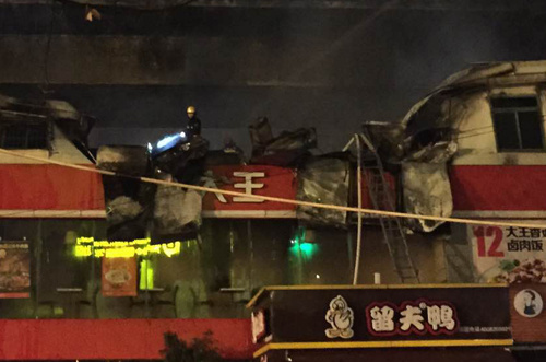 永和大王二層頂部已被燒得面目全非
