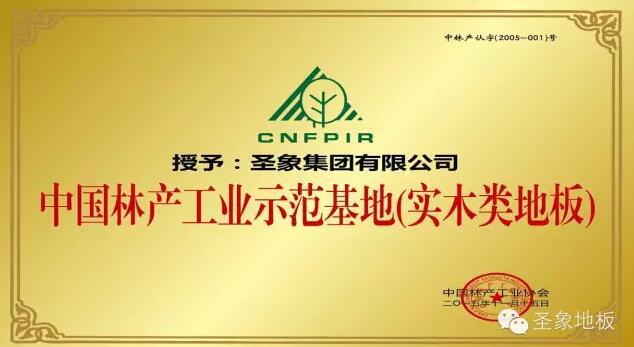 “根據(jù)貴公司確定的發(fā)展目標(biāo)和清晰的戰(zhàn)略規(guī)劃,特別是擬建造句容等高水準(zhǔn)的實木地板生產(chǎn)基地。經(jīng)研究并結(jié)合全國林產(chǎn)工業(yè)“十三五”規(guī)劃和特色區(qū)域分布,中國林產(chǎn)工業(yè)協(xié)會決定授予圣象集團(tuán)有限公司《中國林產(chǎn)工業(yè)示范基地(實木地板類)》。”