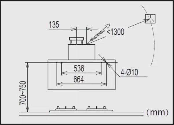 插座要安在煙機(jī)中心靠右邊一點(diǎn)(因?yàn)槌鲲L(fēng)罩在左邊,插座在左邊會(huì)擋住)。建議插座距離地面4875px。
