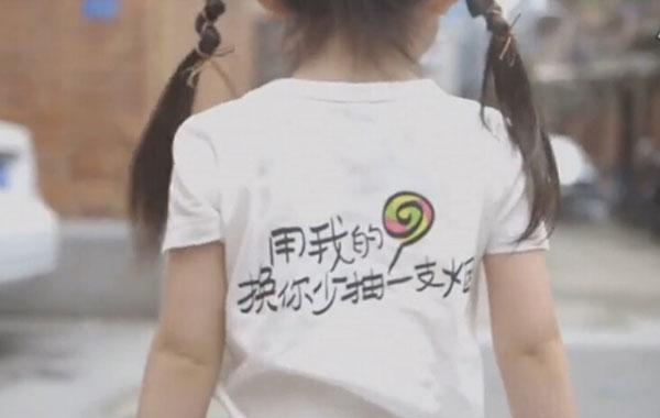 正一頭霧水時,她轉(zhuǎn)過身去,身上的T恤印著這樣 “用我的棒棒糖,換你少抽一支煙” 幾個字。