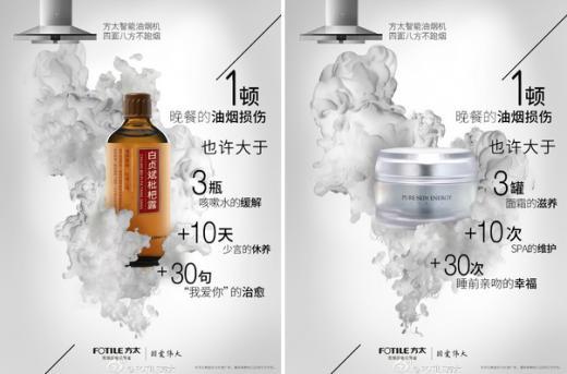 好廣告的背后總有一個巧妙的生活洞察,它源于生活而又能解開埋葬于人們心底的困惑,比如為什么用再貴的護膚品、再滋養(yǎng)的洗發(fā)水、吃號稱最見效的咳嗽藥和滴最明亮的眼藥水,也仍然無法擺脫自己的衰老,一切的一切都是因為藏在廚房里的油煙呀!它含有上百種的有害物質(zhì),每一桌可口飯菜的背后其實都充滿了油煙對廚娘的侵害。