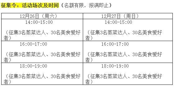 備注:報(bào)名參加的美食愛(ài)好者請(qǐng)備注想要參與的場(chǎng)次及時(shí)間;