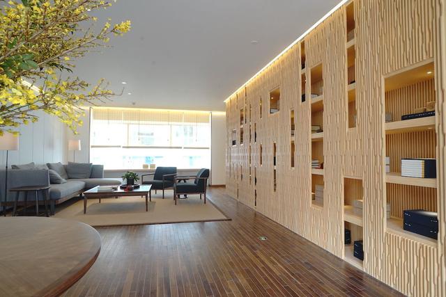 走進(jìn)室內(nèi),再生竹材搭配暖灰石材的使用,為主要的室內(nèi)展示及活動(dòng)空間奠定了現(xiàn)代明快的基調(diào),也順勢(shì)帶出健康環(huán)保的理念。