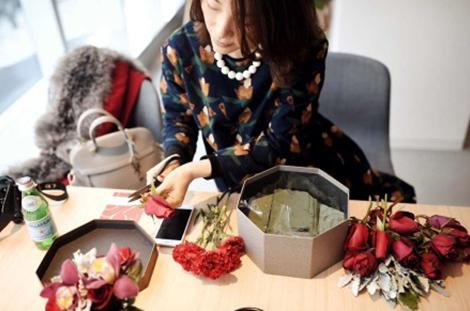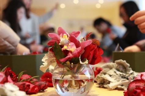 在花藝老師的指導(dǎo)下,現(xiàn)場嘉賓親自動手制作花藝伴手禮