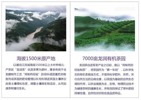 全生態(tài):龍潤(rùn)茶基地極具適宜茶樹的生長(zhǎng)。茶園周邊山巒疊嶂、森林神秘蔥郁、終年云霧繚繞。全年氣候溫和濕潤(rùn)、雨量充沛、土壤肥沃,自然條件得天獨(dú)厚,茶葉內(nèi)含物最豐富,品質(zhì)極佳。